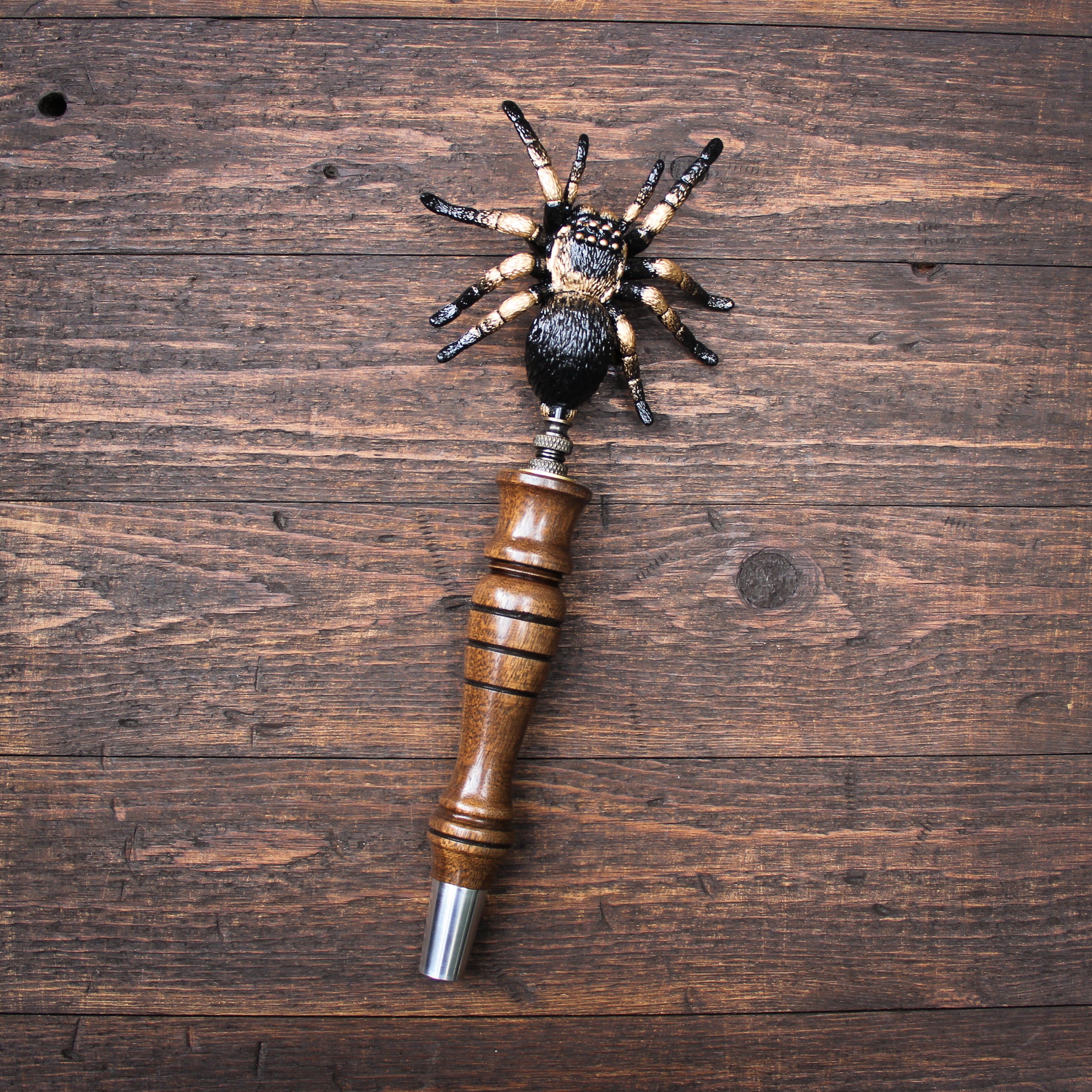 Terrorantula Spider Beer Tap Handle: Elevate your beer service with our Terrorantula Spider Beer Tap Handle! Featuring a strikingly realistic, hand-painted tarantula perched on a solid walnut spindle. This daring, spooky design brings a bold edge to any tap, perfect for those who crave unique and eerie details. Crafted for durability and vivid detail, it’s a conversation starter that commands attention with every pour.